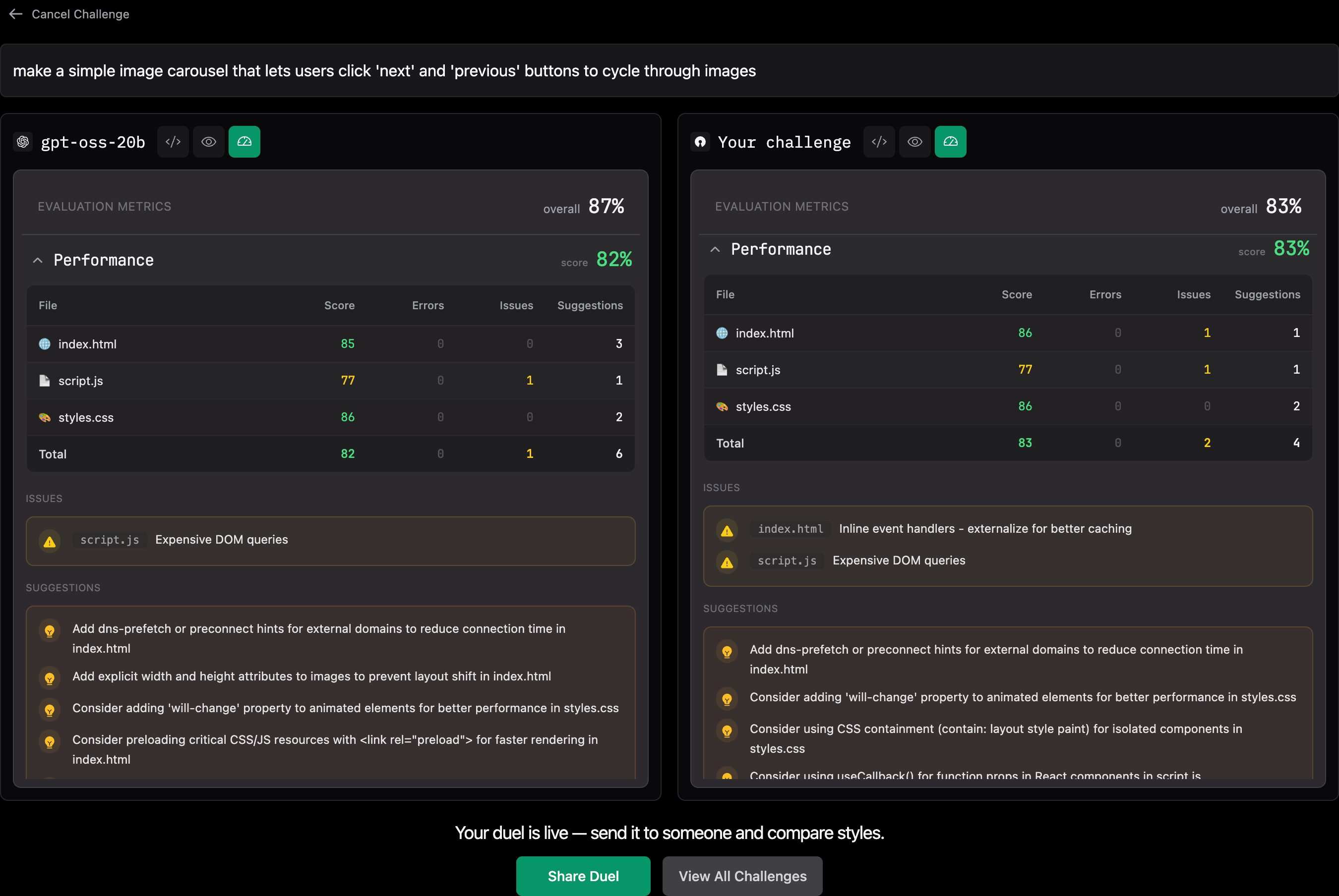 The future of AI-assisted development isn't just about prompting better. It's about developing the judgment to make AI-generated code production-ready. That requires structured learning, objective feedback, and iterative improvement. And that's exactly what VibeCodeArena delivers.